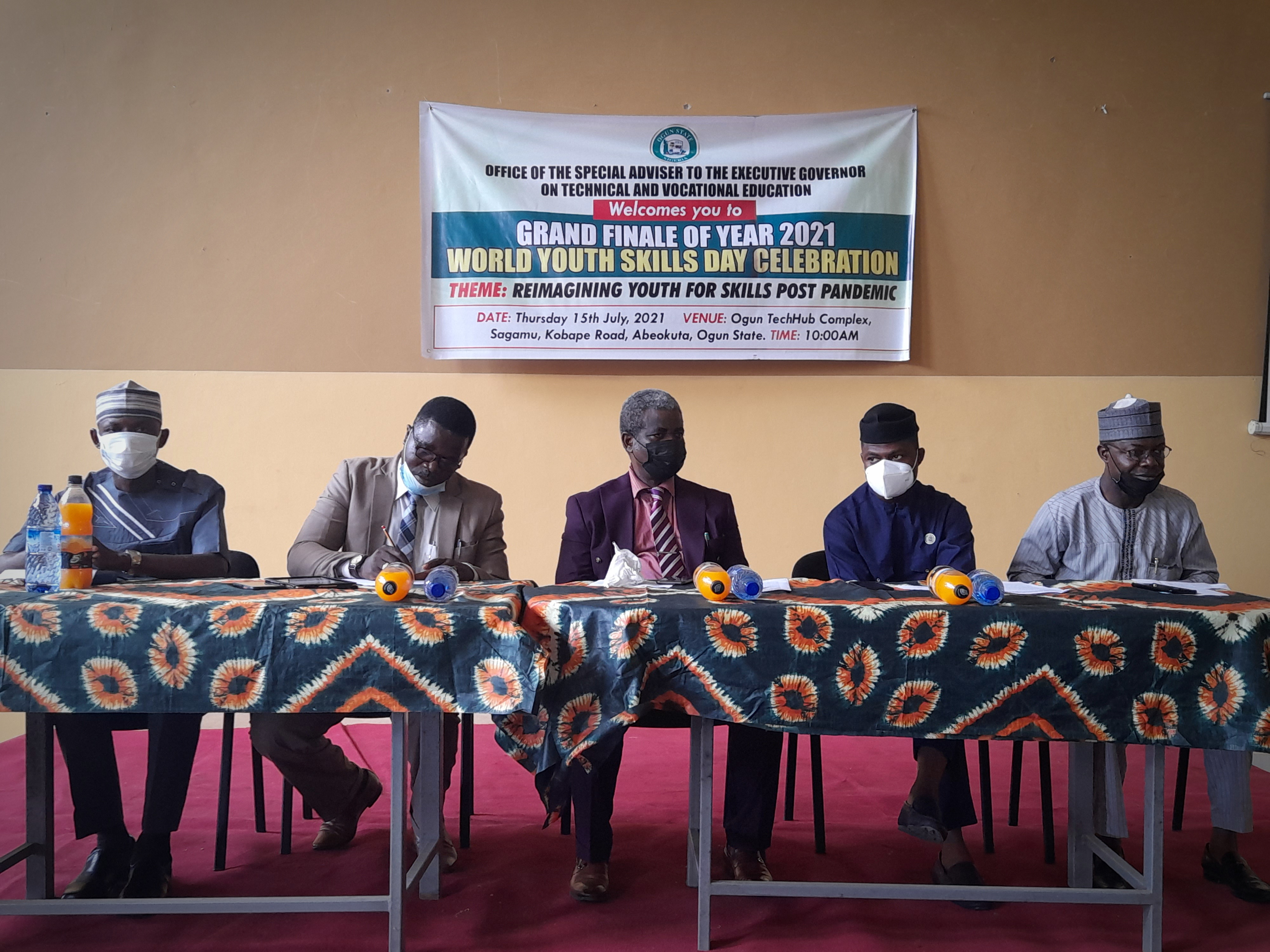 BEING THE WELCOME ADDRESS OF THE OGUN STATE CHAIRMAN, NATIONAL YOUTH COUNCIL OF NIGERIA, COM. ABDUL-JABAR AYELAAGBE AT THE 2021 WORLD YOUTH SKILL DAY CELEBRATION ORGANIZED BY THE OGUN STATE GOVERNMENT THROUGH THE OFFICE OF THE SPECIAL ADVISER ON TECHNICAL EDUCATION IN COLLABORATION WITH NATIONAL YOUTH COUNCIL OF NIGERIA, OGUN STATE CHAPTER TODAY 15TH JULY, 2021 AT OGUN TECH HUB, KOBAPE ROAD, ABEOKUTA, OGUN STATE.